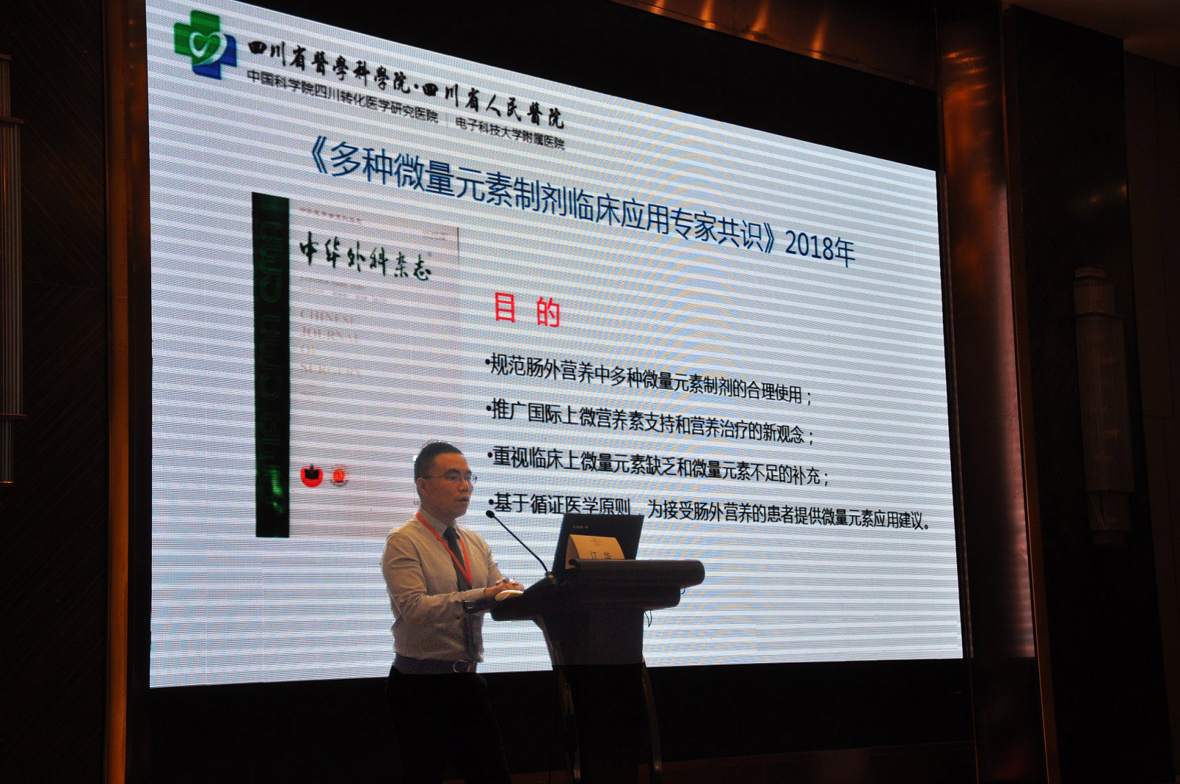 本次会议上,四川省人民医院江华教授对今年三月发表于《中华外科杂志》上的《多种微量元素制剂临床应用专家共识》进行了解读。
