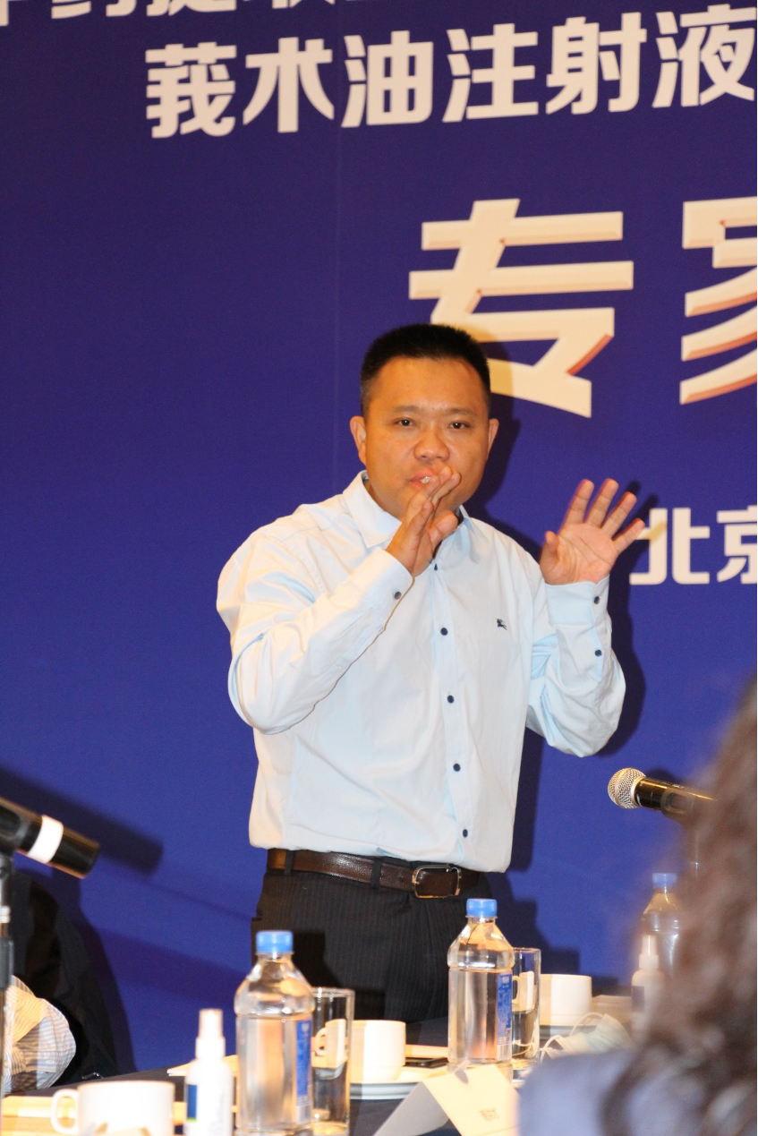 本次会议由中华中医药学会科学普及部张霄潇主任主持,围绕“莪术油注射液有效性与安全性再评价研究”主题进讨论。中华中医药学会王国辰副会长认为学会是一个平台,联系着临床、基础实验、产业来一起推动产品在发展中的实际问题。今年突如其来的“新冠”疫情,中医药发挥了巨大的优势,其中中药注射液对新冠患者的治疗具有较好疗效。期望参会的科学家发挥自己的专业优势,企业承担自己的社会责任,一起做好莪术油注射液的有效性与安全性研究,为“健康中国”做出应有贡献。
