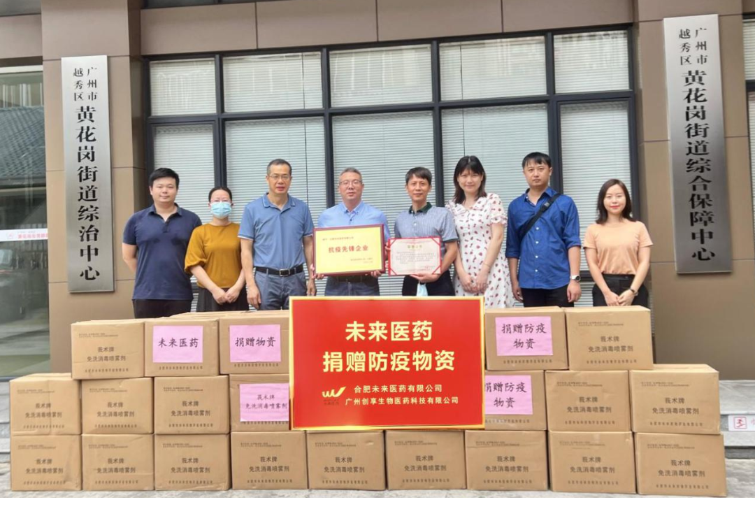 2022年5月31日上午,乐鱼直播官网_乐鱼(中国)官方向广州市越秀区黄花岗街道捐赠5000瓶莪术牌免洗消毒喷雾剂防疫物资捐赠仪式在越秀区黄花岗街道办事处举行。