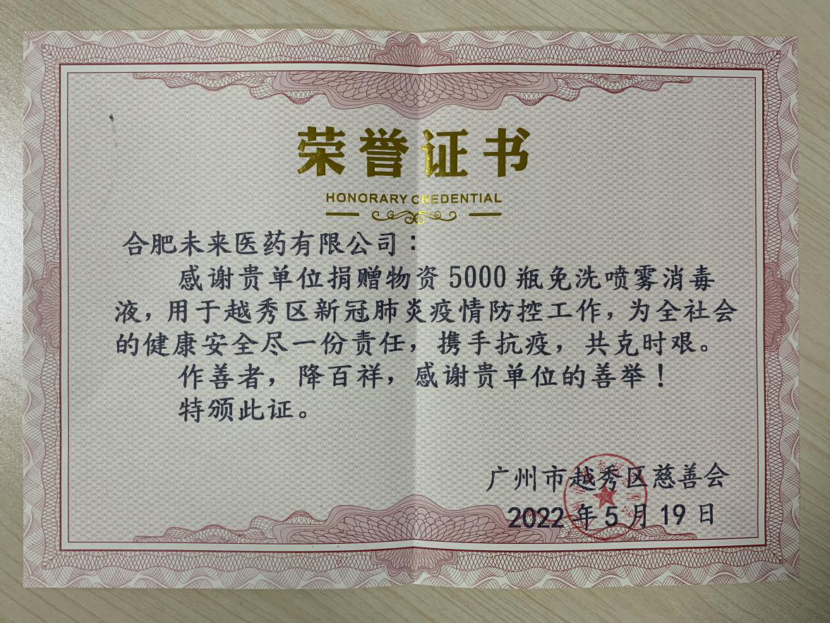 广州市越秀区政协经济科学技术委员会唐炳林主任出席了本次捐赠仪式。广州市越秀区黄花岗街道办事处党政办主任、工会副主席彭华平等代表现场接收捐赠物资,并授予合肥乐鱼直播官网_乐鱼(中国)官方有限公司”抗疫先锋企业”称号。同时,广州市区慈善会向乐鱼直播官网_乐鱼(中国)官方颁发荣誉证书。