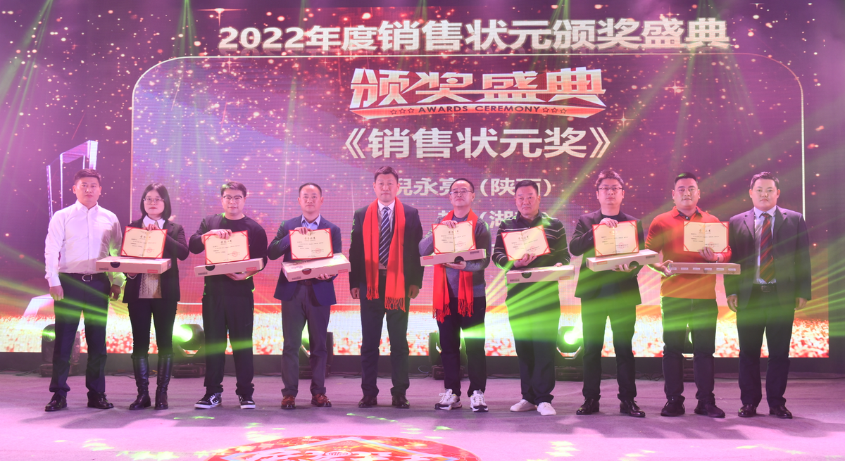年会盛典晚会上,公司对在2022年度工作突出的先进集体和优秀管理者、销售状元、销售标兵、优秀员工和办公6S标准化建设活动标杆部门及“我与未来共成长”优秀征文获奖者进行了表彰和颁奖。