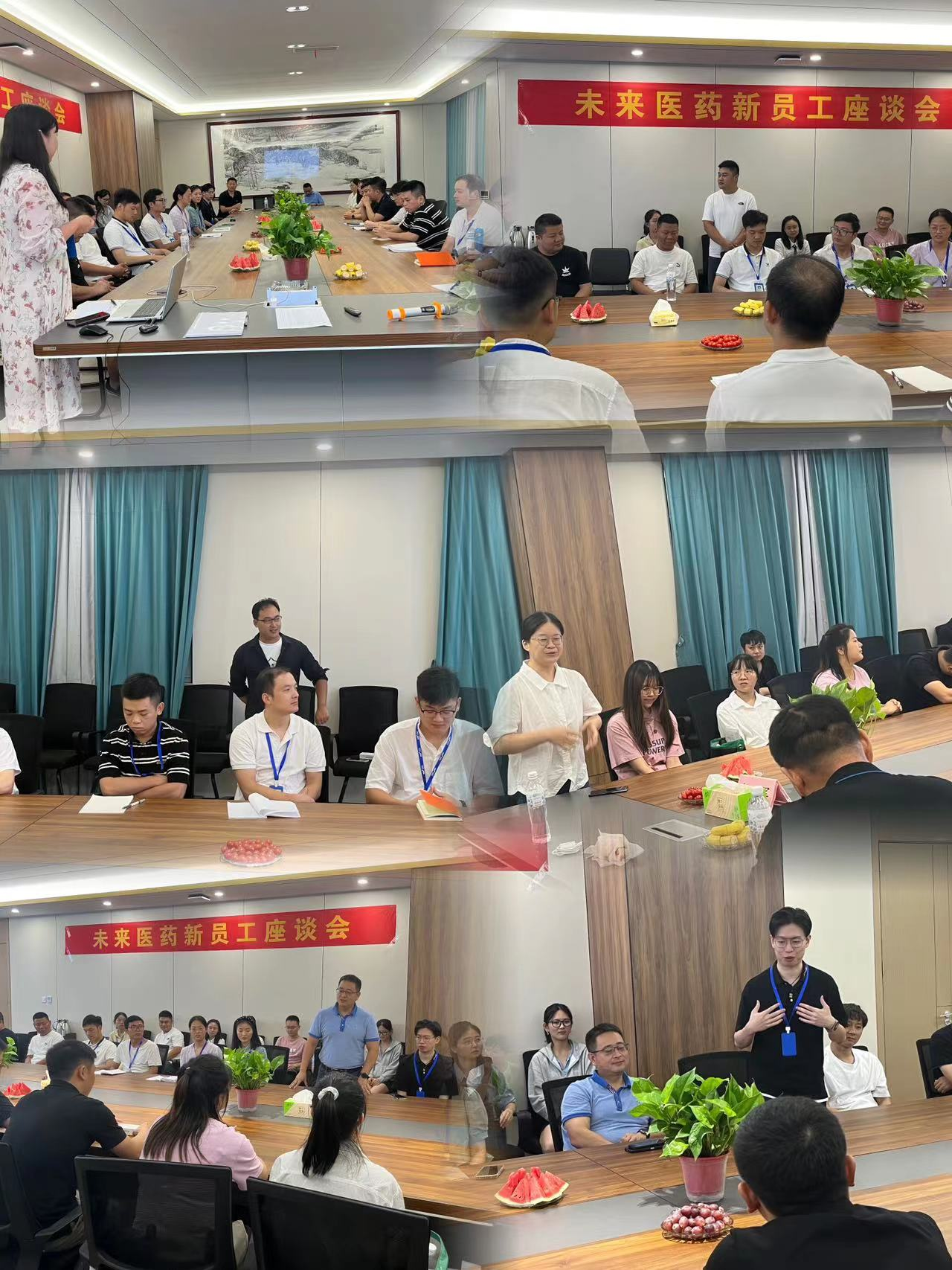 为促进新员工快速融入公司,搭建沟通交流平台,营造良好的文化氛围,进一步增强新员工的归属感,2023年7月28日,公司人力资源管理运营中心组织开展了“遇见未来*预见美好未来”为主题的新入职员工座谈会,邀请公司董事长赵立军先生和药品营销控制管理中心总经理王有军先生共同参加此次座谈会,一起欢迎29位新同事的到来,祝贺他们选择未来,加入未来,成为未来大家庭的一员。