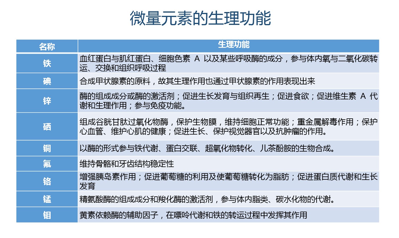 微量元素是指占生物体总质量0.01%以下,且为生物体所必需的一些元素,如锌、铜、锰、硒、氟、碘等,是人体必需营养素,参与多项代谢与功能,而大多为人体无法自身合成,需要每天补充。因各种疾病需要长期接受肠外营养的患者需要通过静脉提供包括氨基酸、脂肪、碳水化合物、微量元素及维生素在内的营养素,以抑制分解代谢,促进合成代谢并维持结构蛋白的功能。